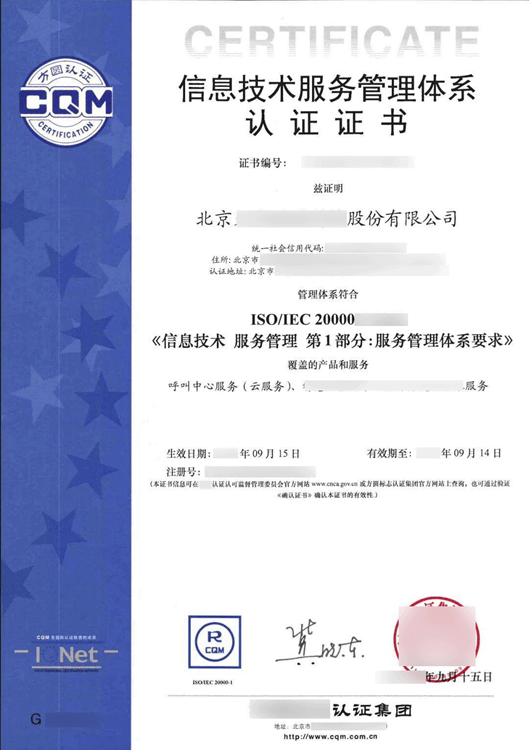 有效期限:3年(每年进行监督审核, 3年到期后需重新认证)