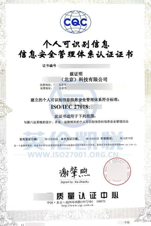 有效期限:3年(每年进行监督审核, 3年到期后需重新认证)