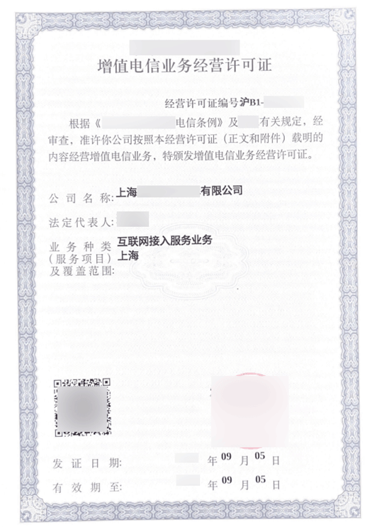 资质全称:第一类增值电信业务经营许可证——互联网接入服务业务 -