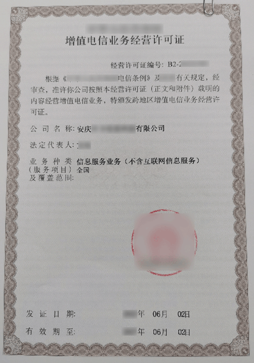 资质全称:第二类增值电信业务许可证-信息服务业务(不含互联网信息服务) -