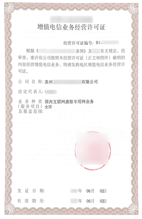 资质全称:增值电信业务经营许可证-国内互联网虚拟专用网业务 -