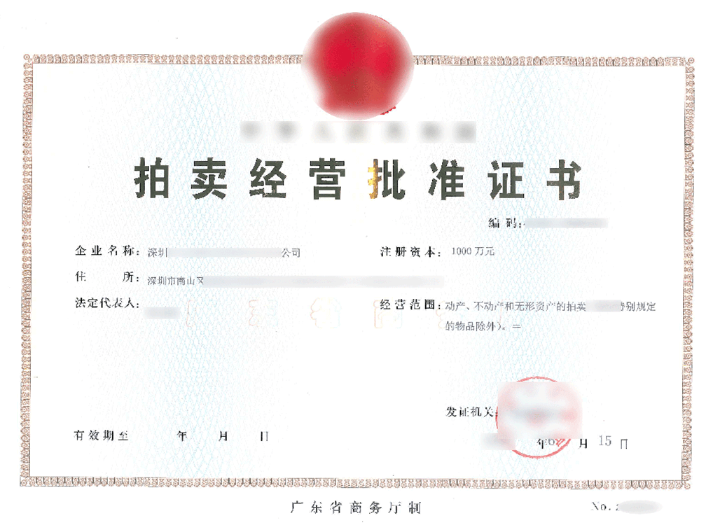 资质全称:拍卖经营批准证书 -